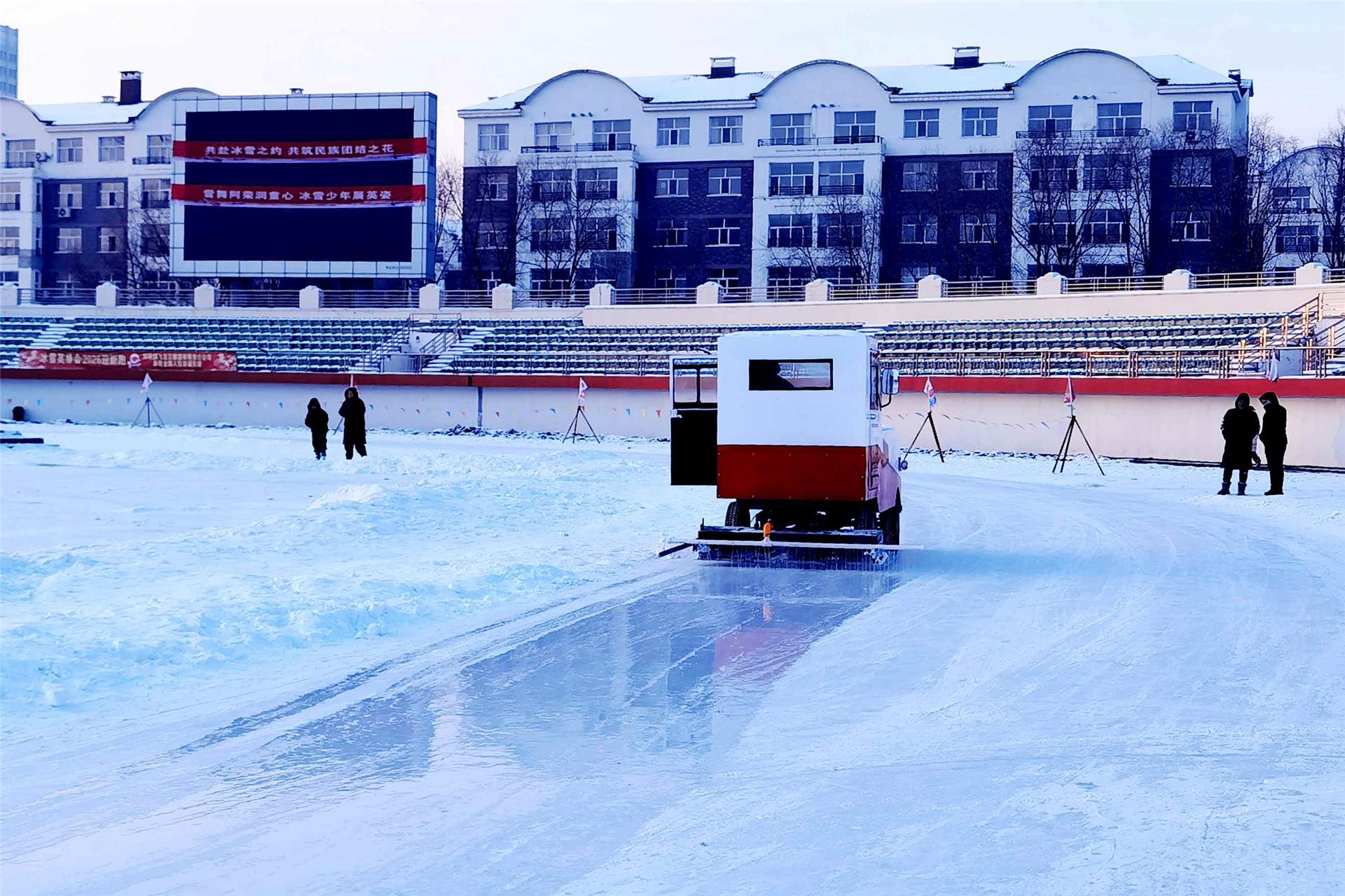 作为赛事场地,阿荣旗体育场已完成多轮精细化冰面维护。工作人员严格对标专业赛事标准,对赛道反复打磨修整,确保冰面平整顺滑,为参赛者筑牢安全优质的竞技根基。