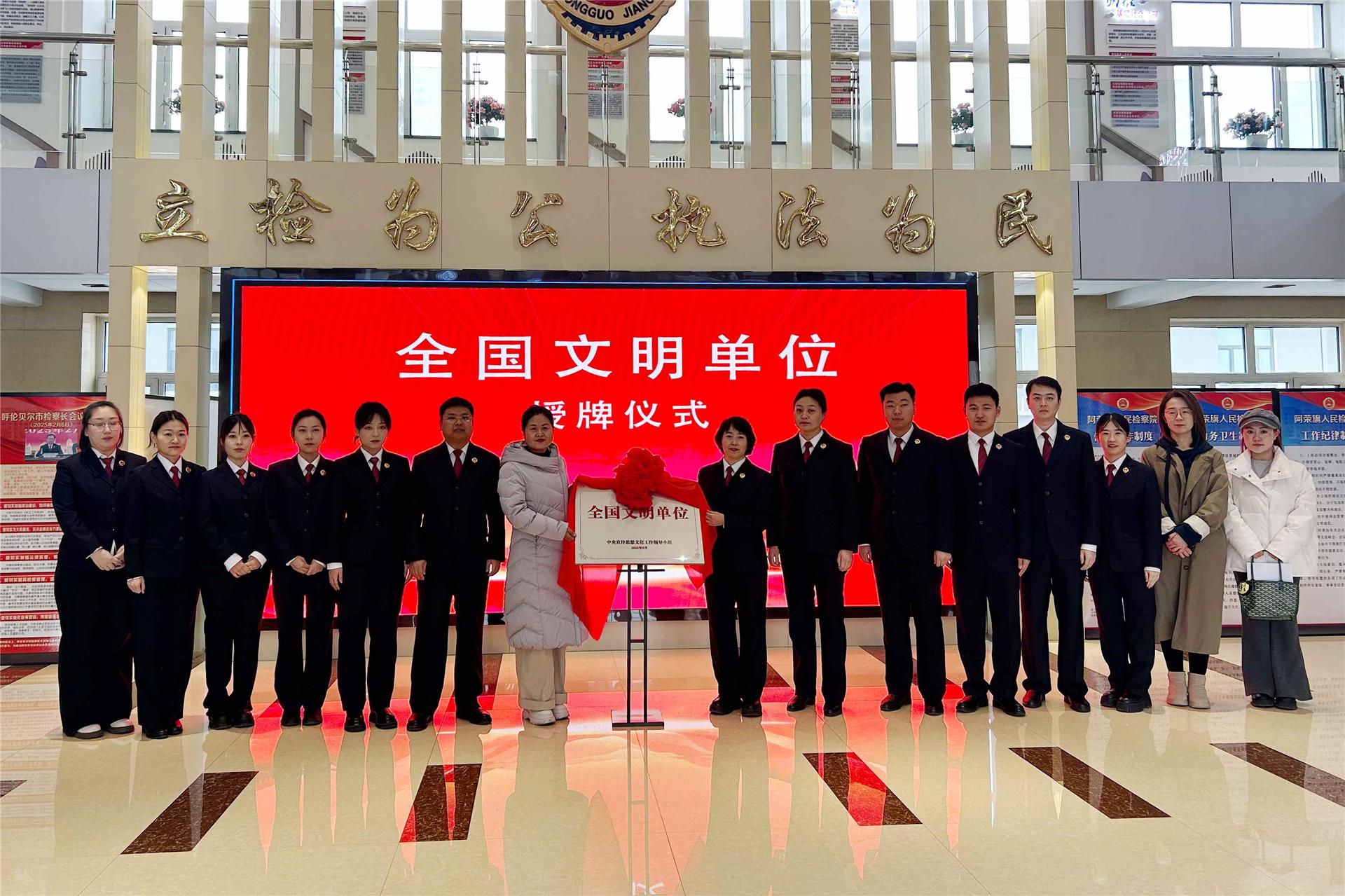 揭牌仪式分别在阿荣旗人民检察院、阿荣旗第一中学隆重举行,旗委宣传部相关负责人为获奖单位揭牌。此次揭牌既是对两家单位长期以来深耕精神文明建设、践行文明理念的认可与嘉奖,更是对其未来持续发挥示范引领作用的殷切期许与有力鞭策。